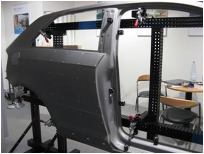 由于攝影測量系統(tǒng)得到的是離散孤立圓點的坐標,為了得到大型物體(如汽車油泥模型)的完整點云,通常與3DSS三維掃描儀配合使用,以輕松得到物體的高精度點云。在這里,攝影測量系統(tǒng)的作用是得到物體的整體框架,3DSS分塊掃描得到物體的局部點云,并且通過框架點自動拼接起來。