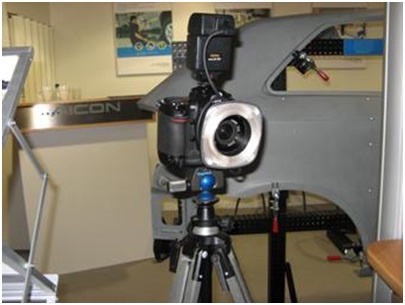 攝影測量系統(tǒng)(3DPS)是一部便攜式三坐標測量機,它采用高解析度數(shù)碼相機采集圖像數(shù)據(jù)。測量前,圓形標志點粘貼在所有將被測量的點上,然后用高解析數(shù)碼相機從不同角度對被測量物體拍照,這些相片輸入到AICON 3D Studio測量軟件中,可以自動計算所有靶點的三維坐標。計算是基于空間圖像三角化原理(照相測量法),并且是全自動的。由于軟件中內含有同步校準步驟,所以不需要預先校準相機。